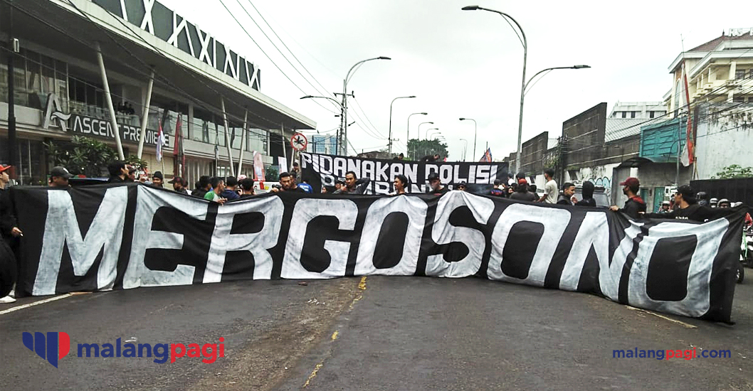 Aremania kembali turun ke jalan untuk melakukan aksi solidaritas atas Tragedi Kanjuruhan yang terjadi 1 Oktober lalu. Massa yang mengatasnamakan Muda-Mudi Mergosono tersebut bahkan memblokade jalan layang (flyover) yang terletak di Jalan Kolonel Sugiono, Minggu (13/11/2022).