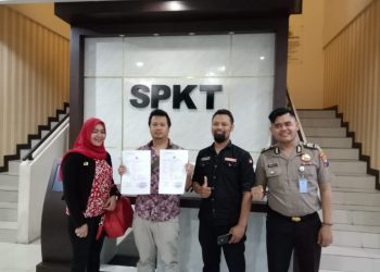 Foto: Sanni ariawan wisdianto yang di dampingi pengaca Irfa'i, S.H saat laporan di Polda Jawa Timur....