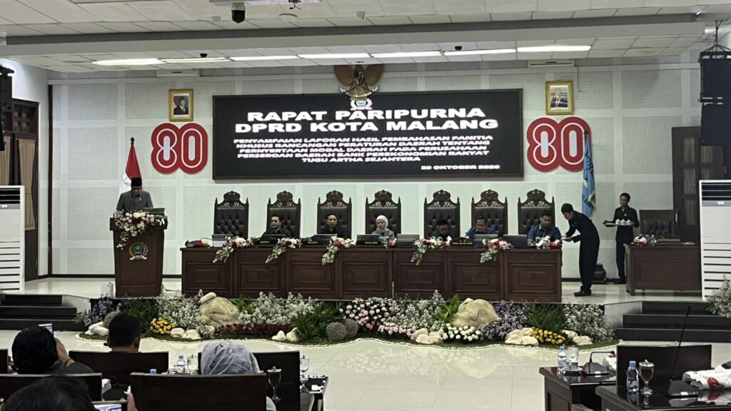 Dewan Perwakilan Rakyat Daerah (DPRD) Kota Malang menggelar rapat paripurna dengan agenda penyampaian hasil Panitia Khusus (Pansus) terkait penyertaan modal bagi Bank Perkreditan Rakyat (BPR) Tugu Artha, pada Rabu (29/10/2025).