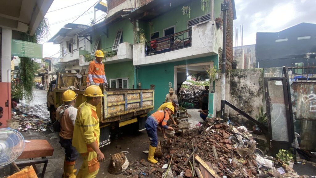 “Air dari belakang rumah sudah tinggi, ditambah dari jalan raya juga meluap. Di sini tidak kuat menampung, akhirnya dinding rumah ambrol,” jelasnya.