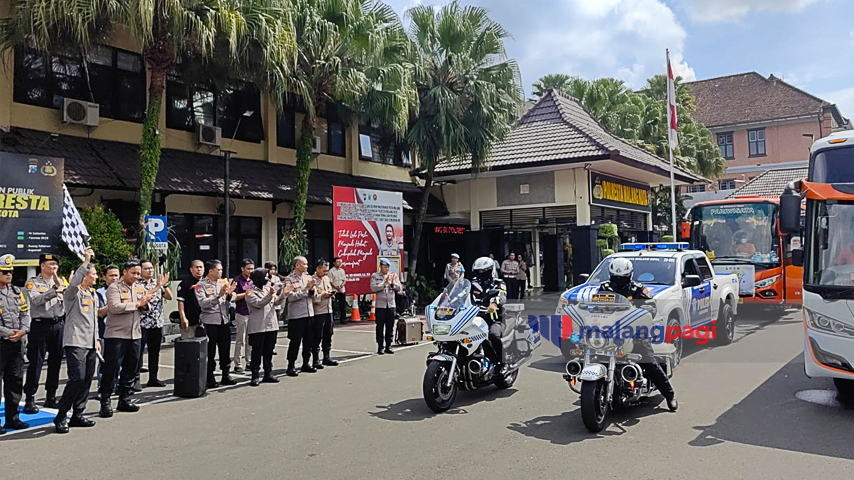 Kapolresta Malang Kota, Kombes Pol Budi Hermanto memberangkatkan tiga bus berisi 80 peserta program Balik Budik Gratis, dengan tujuan Semarang dan Jakarta, Jumat pagi (28/4/2023).