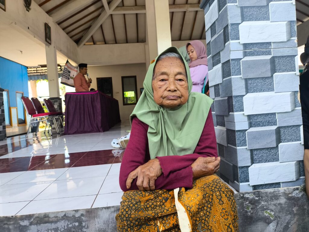 Salah satu yang paling mencuri perhatian adalah Mbah Warsi (90), janda sepuh asal Dusun Umbulsari, Desa Kaliasri. Dengan tubuh renta namun semangat yang masih menyala, ia sudah duduk di balai desa sejak pukul 09.00 WIB.