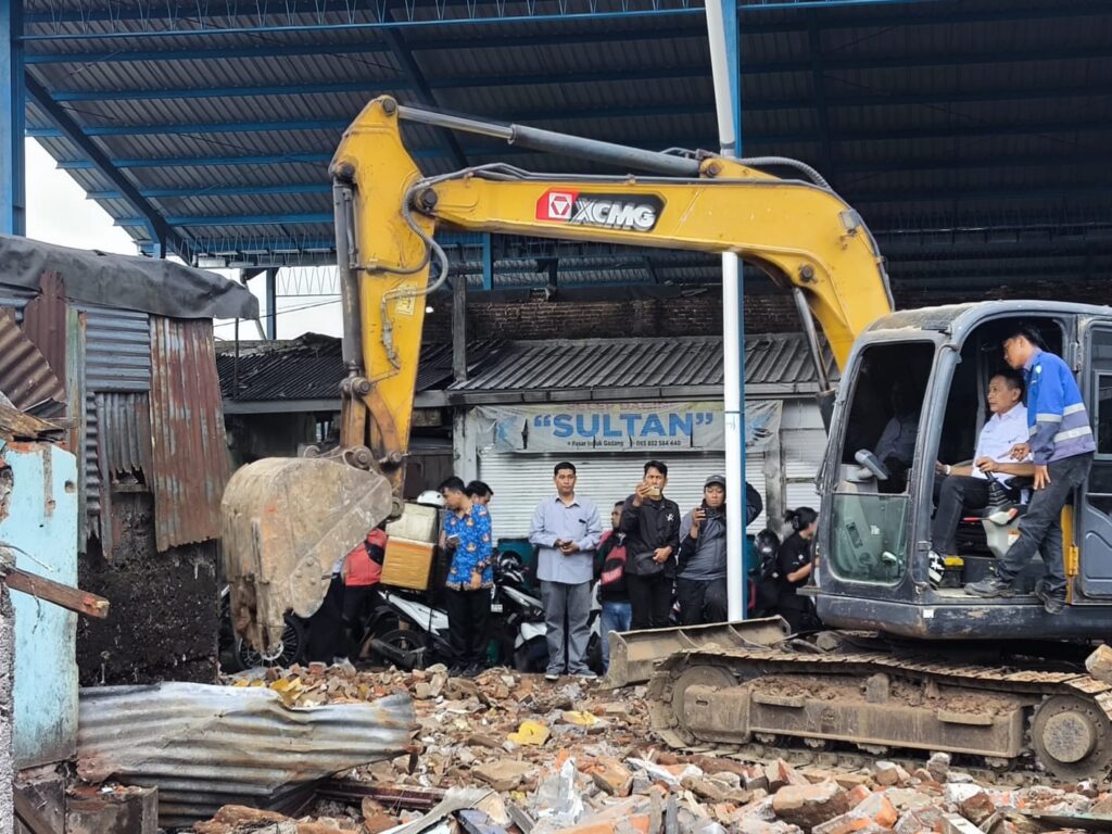 Wali Kota Malang, Wahyu Hidayat saat membongkar bangunan bedak lama Pasar Gadang. (Foto: YD/MP)