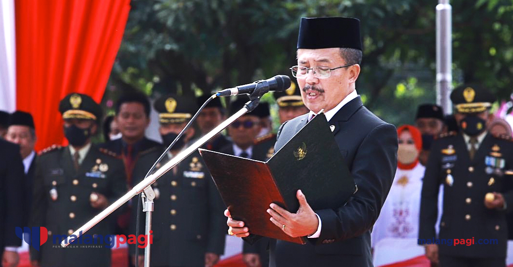Wakil Walikota Batu, Punjul Santoso didapuk Inspektur Upacara dalam peringatan Hari Pahlawan Tahun 2022 yang digelar di halaman Balaikota Among Tani, Kamis (10/11/2022).