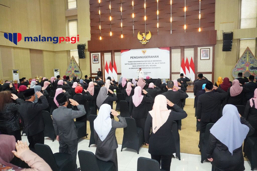Memperingati Hari Pendidikan Nasional (Hardiknas) Tahun 2023, sebanyak 88 guru di lingkungan Pemerintah Kota Batu menerima Tanda Kehormatan Republik Indonesia Satyalancana Karya Satya. Penghargaan dari Presiden Republik Indonesia ini diserahkan langsung oleh Pj. Wali Kota Batu, Aries Agung Pawai, di Graha Pancasila, Balai Kota Among Tani, Selasa (02/05/2023).