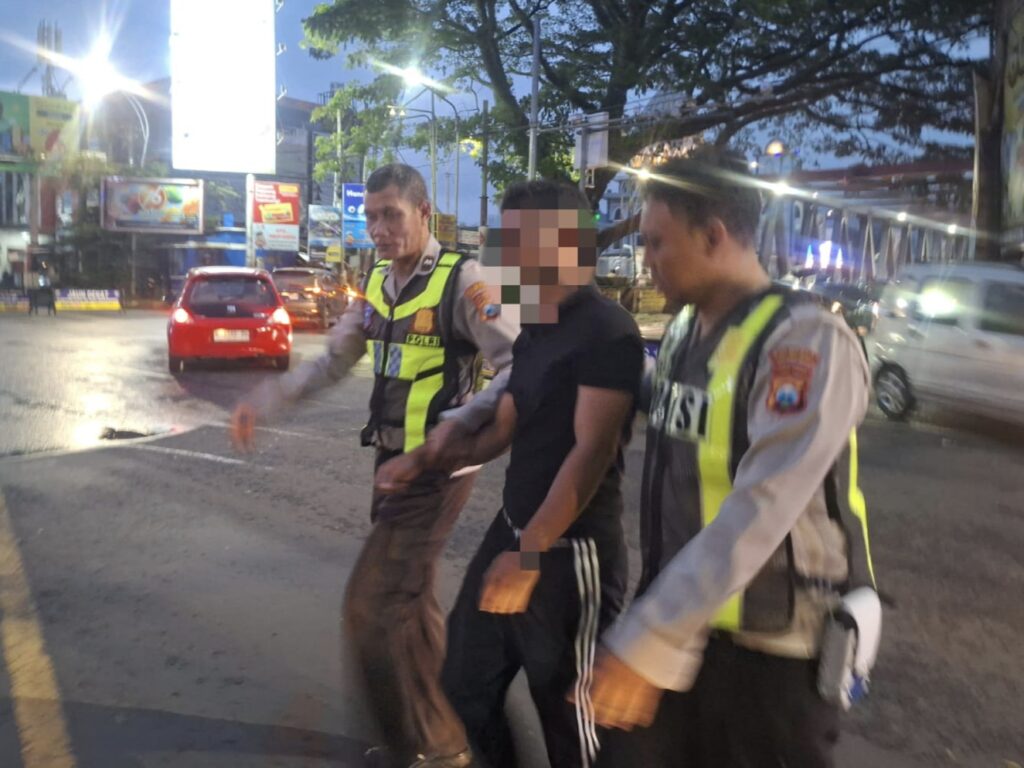 Melihat situasi tersebut, petugas bersama sejumlah pengendara yang melintas segera bertindak cepat dan berhasil mengamankan SF sebelum aksi nekat itu terjadi.