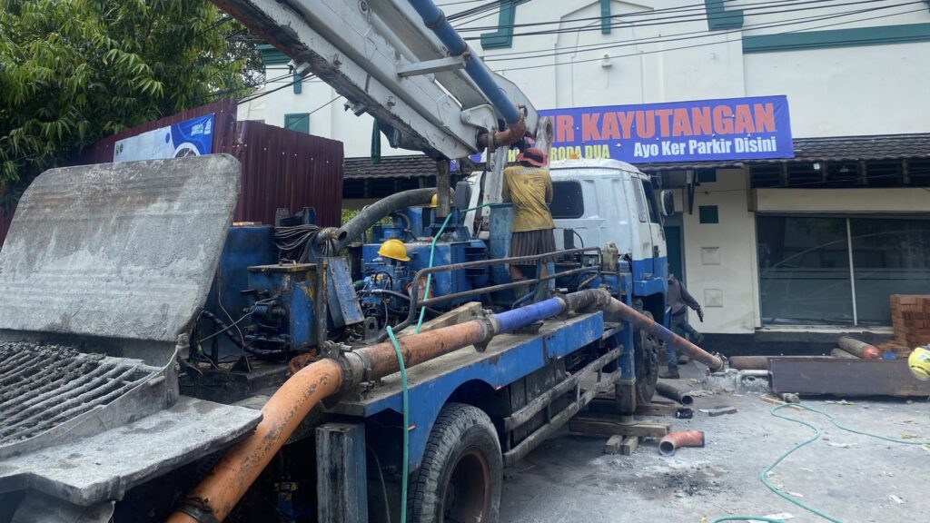 Pantauan di lapangan menunjukkan sejumlah pekerja tengah melakukan pengecoran pondasi bangunan, dengan truk molen dikerahkan untuk mempercepat proses konstruksi. Gedung parkir ini nantinya akan dibangun tiga lantai untuk menampung kendaraan wisatawan yang berkunjung ke Kayutangan Heritage.