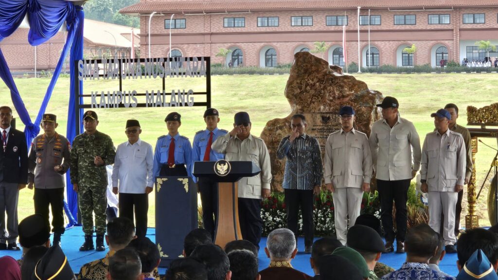 Presiden Republik Indonesia, Prabowo Subianto meresmikan SMA Taruna Nusantara Kampus Malang, pada Selasa (13/1/2026). Peresmian ini menjadi bagian dari komitmen pemerintah dalam memperkuat pendidikan unggulan guna menyiapkan sumber daya manusia Indonesia yang berdaya saing.
