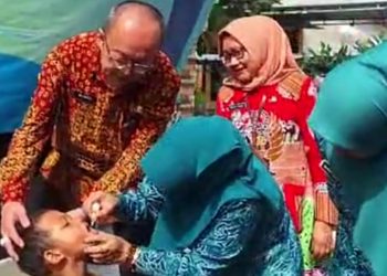Pj Ketua TP-PKK Kabupaten Malang didampingi Kadinkes Kabupaten Malang memberikan vaksin Polio, Jumat (19/1/2024). (Foto: Dinkes ...