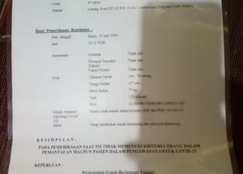 Surat Keterangan Kesehatan dari RSUD Dr. Saiful Anwar Kota Malang, Pasien atas nama Djuwari.(Ft: Doni/malangpagi.com) KABUPATEN MALANG, Malangpagi.com - ...