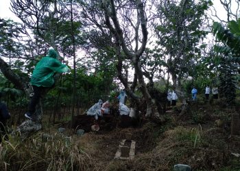 Pemakaman seorang warga Bumiaji Kota Batu yang di nyatakan positif (PDP), di makamkan oleh pihak medis, pihak Desa dan ...