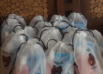 Pouch kesehatan berisikan sabun cuci tangan dan tissue basah yang akan di bagikan ke masyarakat Desa Sidomulyo. KABUPATEN ...
