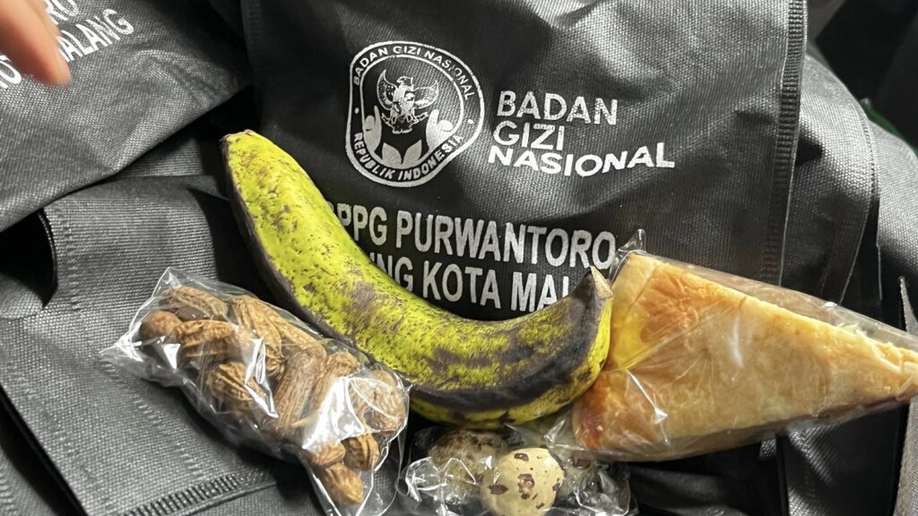 Dalam satu paket MBG itu terdapat empat jenis makanan, yakni roti, kacang, telur puyuh, dan pisang.