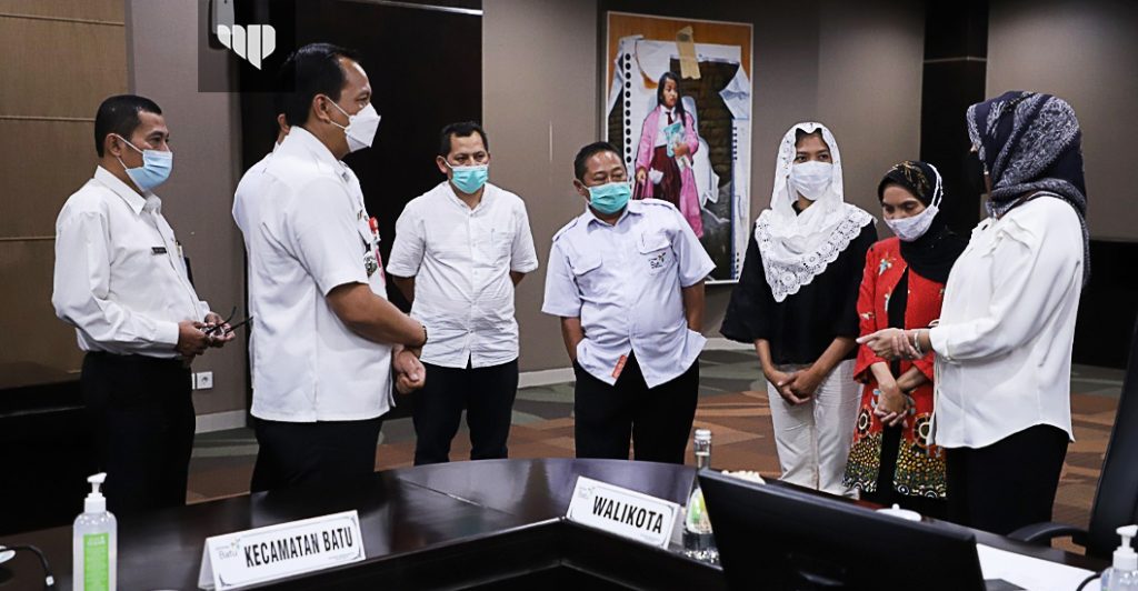 Walikota Batu, Dra. Hj Dewanti Rumpoko, M.Si menerima kunjungan Wahid Foundation yang dipimpin oleh Visna Vulovik, di Gedung Balai Kota Among Tani, Jalan Panglima Sudirman No. 507, Pesanggrahan, Kecamatan Batu, Kota Batu, Rabu (2/6/2021).