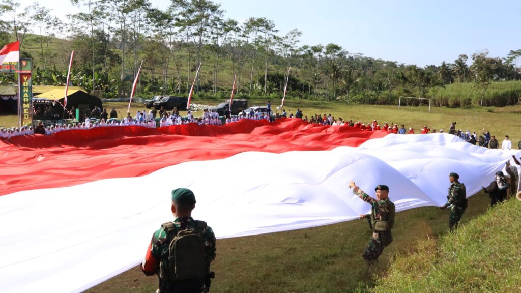 Kegiatan tersebut diikuti lebih dari 500 peserta yang terdiri dari masyarakat, tokoh desa, hingga pelajar setempat. Atmosfer nasionalisme terasa kuat ketika bendera kebanggaan bangsa itu dikibarkan bersama-sama oleh prajurit TNI dan warga.